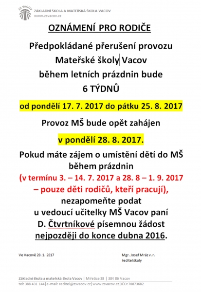 na oficiálních stránkách Základní školy a mateřské školy Vacov.